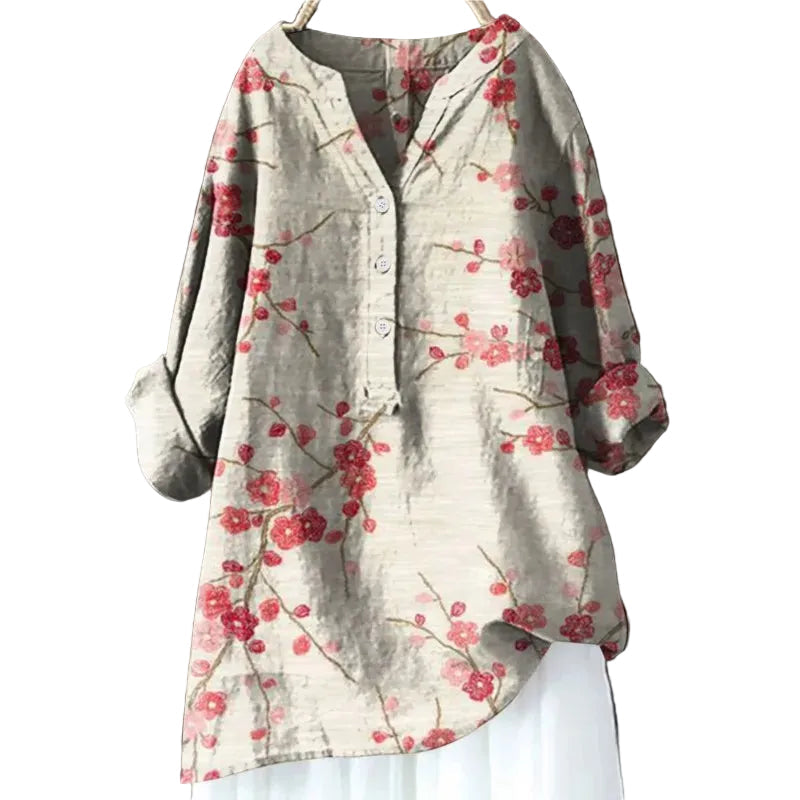 Denna charmiga blus utgör den perfekta föreningen av elegans och hög komfort, skräddarsydd för den moderna kvinnan som önskar en stilren och användbar garderobsfavorit. Med sitt iögonfallande blommönster och genomtänkta design är den idealisk för en mängd olika tillfällen, från vardag till fest.